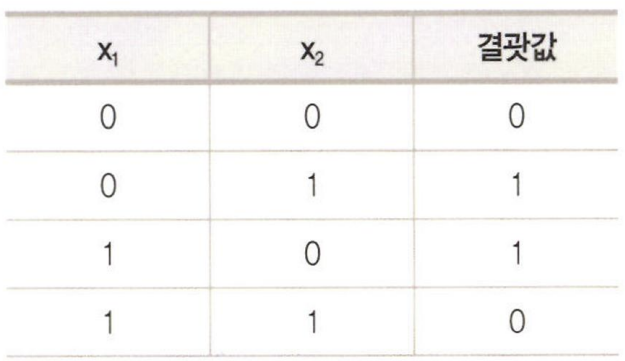 실제 값이 될 XOR 진리표는 다음과 같다.