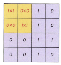 ( 1 x 1 ) + ( 0 x 0 ) + ( 0 x 0 ) + ( 1 x 1 ) = 2