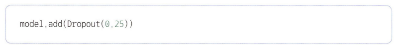 랜덤하게 노드를 꺼 주면 과적합을 방지할 수 있습니다. 케라스를 이용해 25%의 노드를 꺼봅시다.