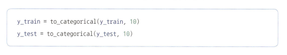 np_utils.to_categorical() 함수를 이용해 [5]를 [0,0,0,0,0,1,0,0,0,0]으로 바꾸는 것과 같은 과정을 진행할 것입니다. to_categorical(클래스, 클래스의 개수) 형식으로 지정합니다.